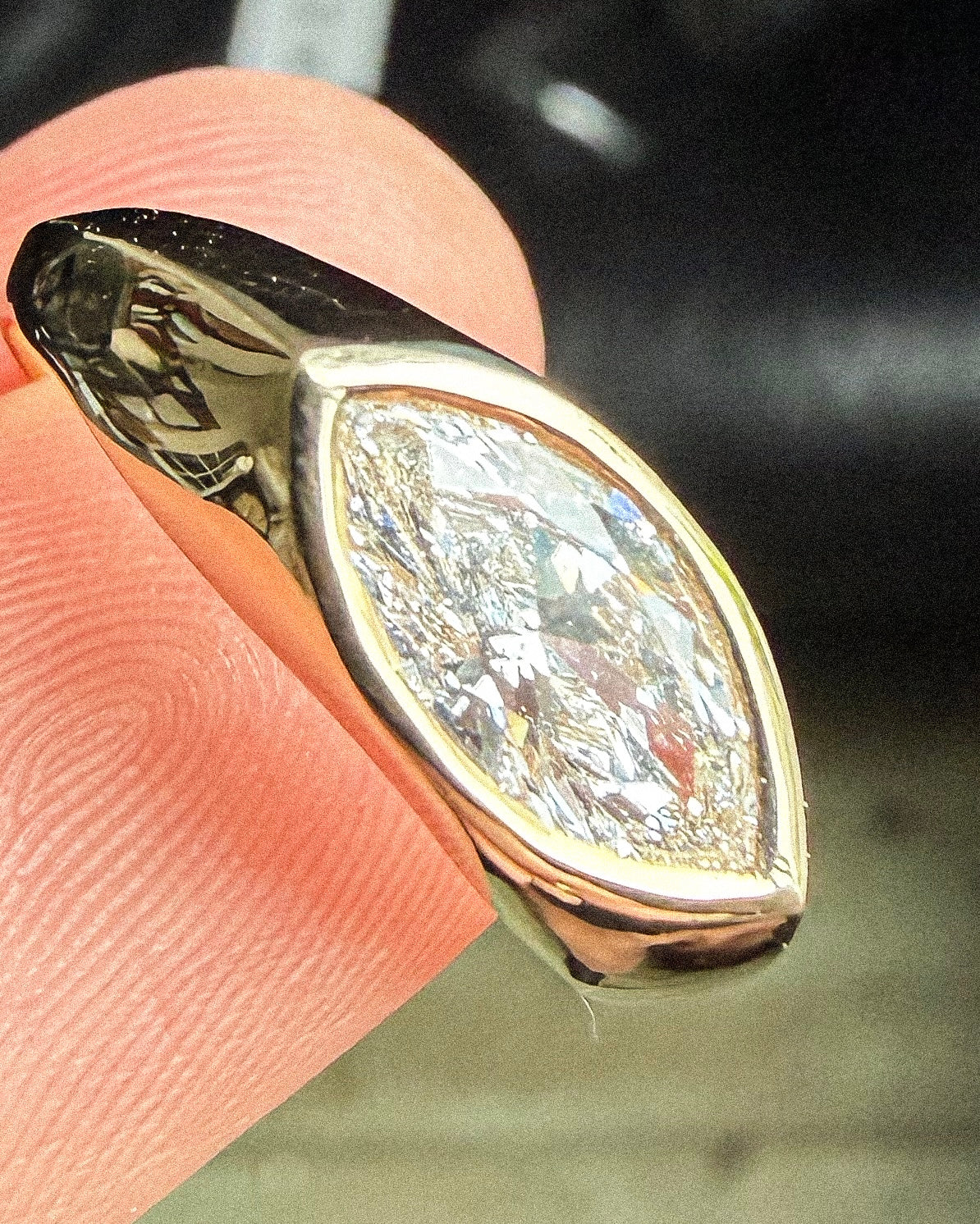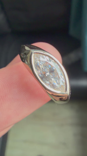 1ct Marquise cut Lab Diamond VS1 set in 9ct yellow gold. Size M (resize available) This is a one off piece ready to ship. If wanting something similar head to our contact page to arrange a custom ring.